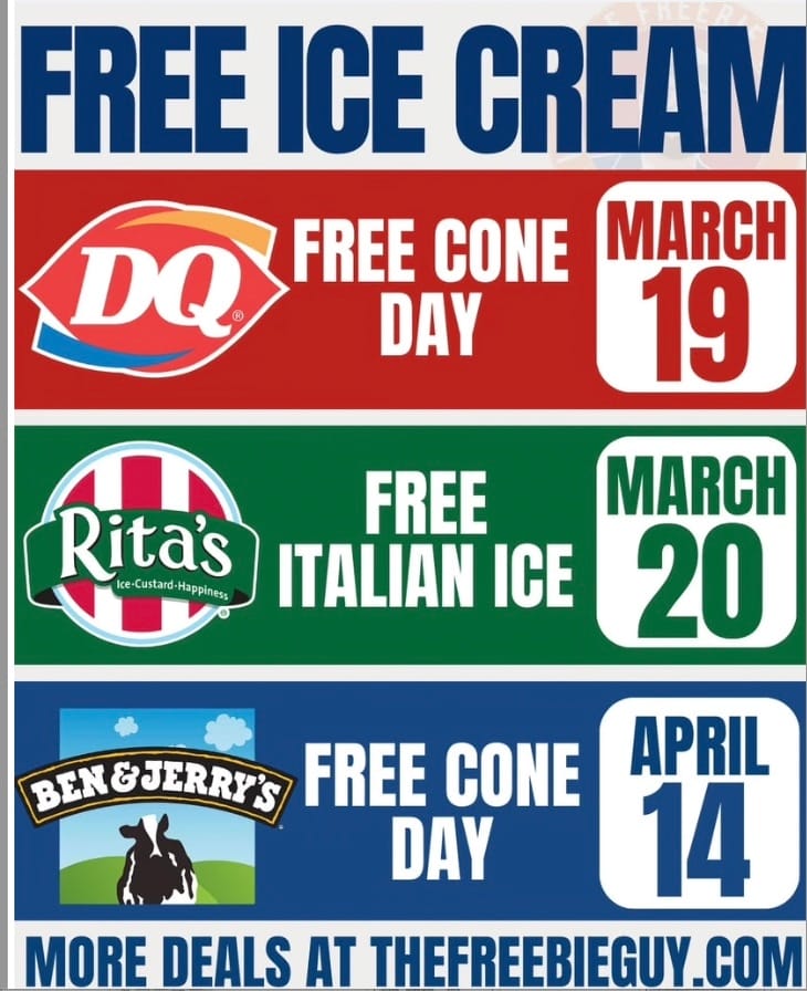 Friday stop by Dairy Queen to get your free ice cream and Saturday head to Rita’s for an Italian Ice.